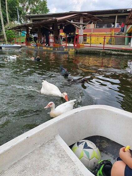 Located in the heart of Dosquebradas, Risaralda; Lago de la Pradera Park is a tourist and recreational destination that offers a unique and exciting experience for visitors of all ages, you can enjoy a relaxing ride on the lake in a paddle boat, explore the surroundings of the lake through trails and hikes, enjoy nature and the tranquility of the gardens and green areas. Lago de la Pradera is an ideal destination to escape from stress and connect with nature, experience the beauty and tranquility of the lake! This experience lasts 3 hours, from 2:00 pm to 5:00 pm; we will pick you up at the lodging place and drop you off at the same place, it includes only one cholao and the entry to the park, the rest of the expenses are the participant's responsibility. The park has a swimming pool the value of entry to this is not included.