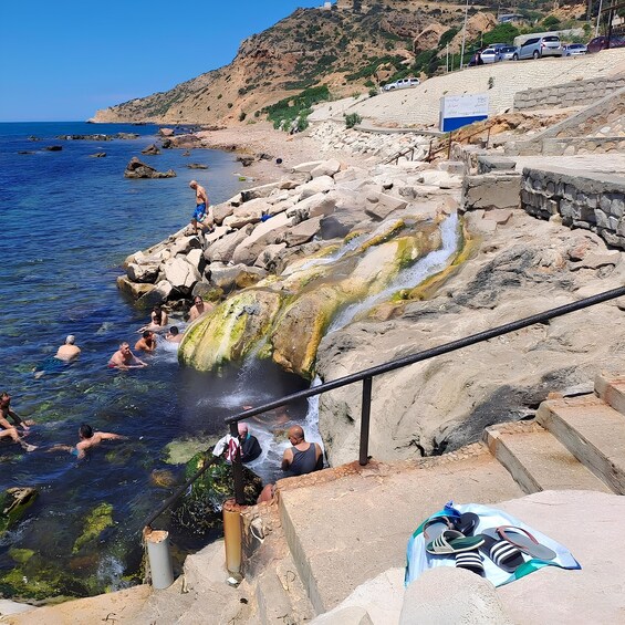 • Korbous Hot Springs: Swim where natural thermal water meets the sea waves.