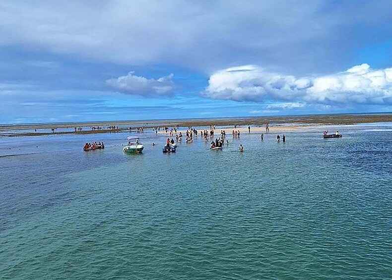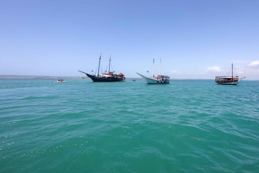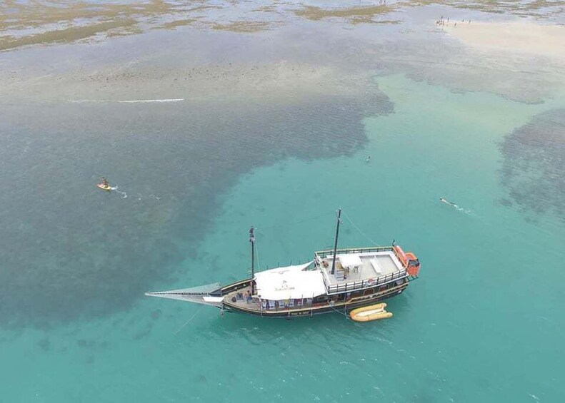 Your adventure begins at the Municipal Pier, located at the entrance of the Passarela da Cultura, one of Porto Seguro’s most charming and lively areas. After boarding a comfortable schooner, you’ll set sail into the open sea for a scenic 45-minute cruise, where gentle waves and ocean breezes create the perfect mood for the day ahead. As you drift away from the coastline, the shades of blue deepen and the horizon opens up, signaling your approach to an extraordinary natural treasure.