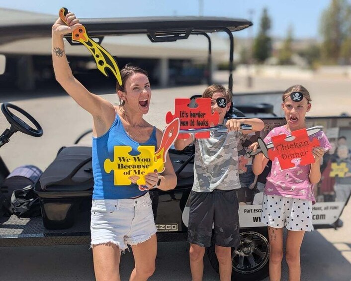 Set sail on a unique outdoor adventure with Puzzle Rides' Pirate's Treasure Adventure in Prescott, AZ. This exciting game combines the thrill of an escape room with the freedom of a scavenger hunt, all while riding on golf carts. Perfect for families, friends, or coworkers, this adventure challenges players to work together, solve puzzles, and explore the town.