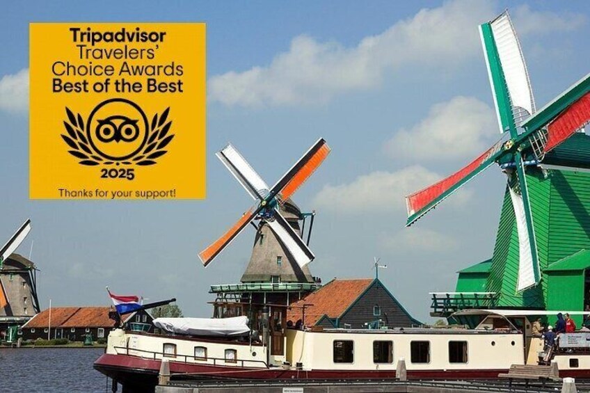 First, you will arrive at Zaanse Schans where you explore the Dutch countryside and windmills. Your guide will tell you about the area and you have entrance to various windmills. See the inside of a Dutch windmill and explore the many traditional wooden houses, barns and shops.