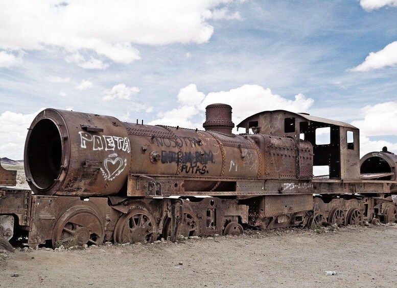 This day we will arrive in Uyuni in the morning and walk to a local place so you can have breakfast on your own. Then we will take a 4x4 vehicle that will take us to the Salar de Uyuni, which is considered the largest salt desert in the world. On our way we will make a stop at the Uyuni train cemetery, where you will see the first locomotives that circulated in Bolivia.