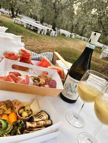 Upon your arrival in the cellar you will be accompanied directly by the producer through the guided tasting of 3 types of wine typical of the area. After you can collect a Picnic box per person and inside you will find: