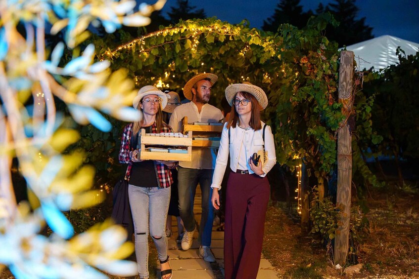 In the magical atmosphere among the vineyards and olive groves, you will spend the evening outdoors, under the stars, tasting good wine and delicious picnics accompanied by live music.