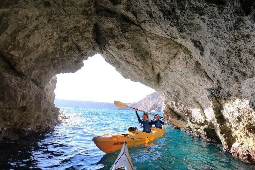 Small-Group Santorini Sea Caves Kayak Trip with Snorkelling & Picnic