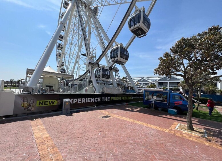 Join us for an unforgettable seven-hour tour that showcases the stunning sights and experiences Cape Town has to offer. This intimate small group adventure begins with a ride on the iconic Cape Town Wheel. Soaring 40 metres into the air, this giant observation wheel provides breathtaking panoramic views of the city, Table Mountain, and the sparkling Atlantic Ocean. It’s a perfect opportunity to capture incredible photographs and gain a unique perspective of this beautiful region.