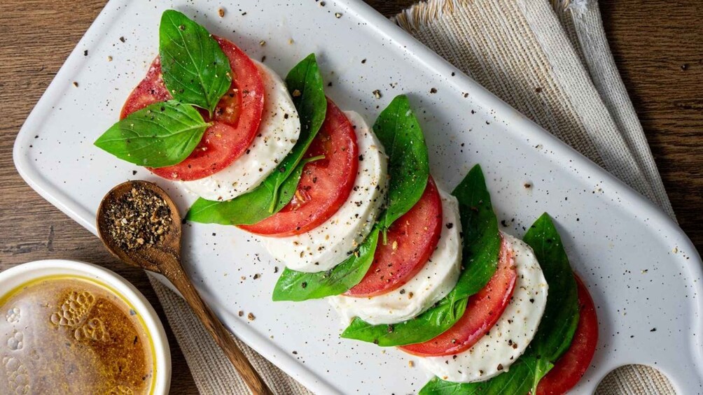 You can dress your Caprese salad to your liking, using the PDO oils included in the tasting.