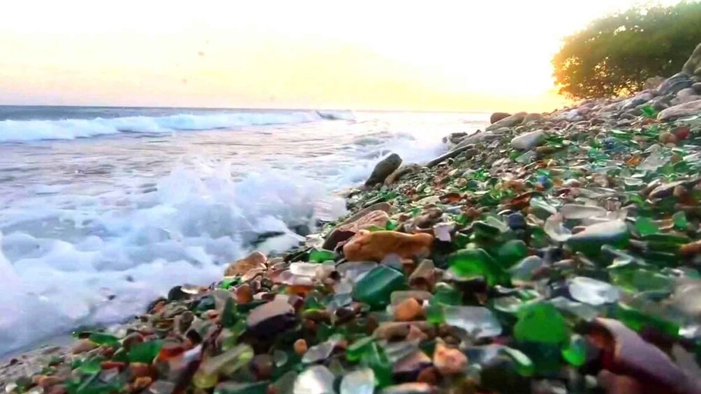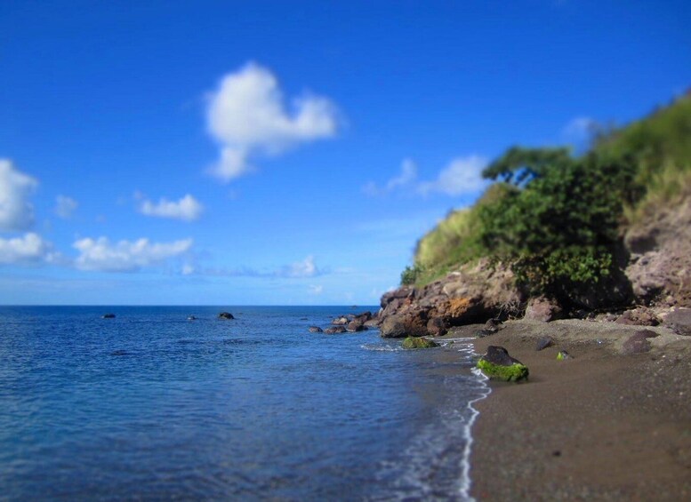 Our destination is a hidden gem: a truly unique volcanic beach where jet-black sands meet the turquoise Caribbean Sea. This isn't just a stop; it’s an explorer’s paradise. You will have ample time to treasure hunt among the pebbles for frosted sea glass, polished to perfection by the tides. Whether you're a seasoned collector or a first-time hunter, you can gather as many ocean-tumbled jewels as your heart desires. Afterwards, wash away the tropical heat with a refreshing dip in the crystal-clear waters, surrounded by the dramatic beauty of our island’s volcanic landscape.