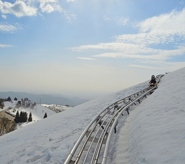 Choose the speed that suits you best and race down the mountain at full speed or enjoy the scenery at a leisurely pace. With two-seater sleighs, you can control the speed and enjoy a personalised experience, whether you’re a thrill-seeker or just want to take the scenic route full of twists and turns, admiring Lake Maggiore from above.