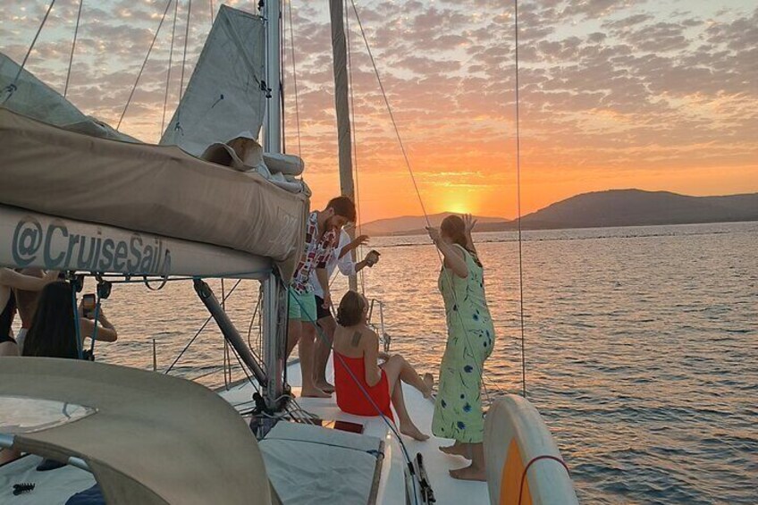 Sunset aperitif on a sailing boat in Alghero