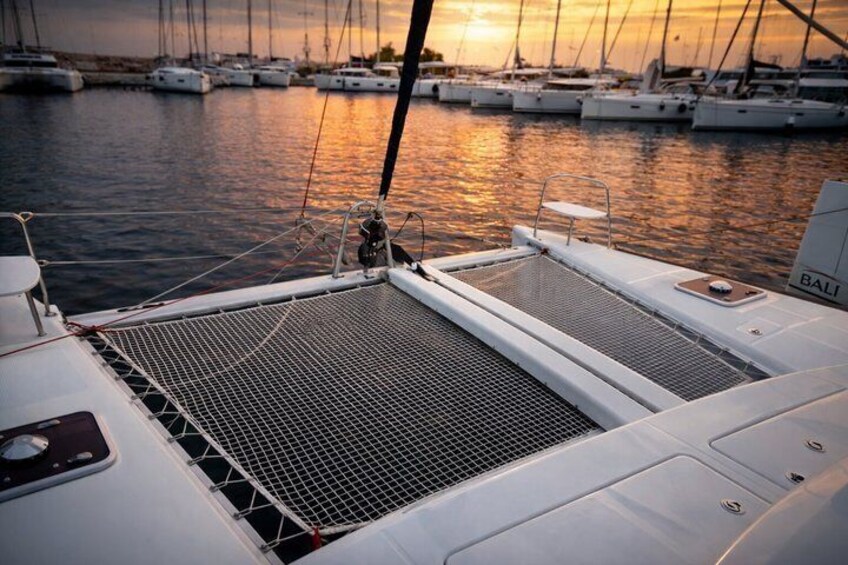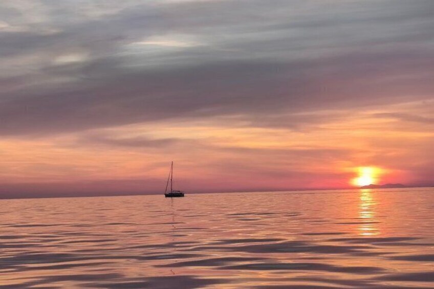 Set sail in the soft glow of late afternoon as the Messinian coastline lights up. This shared sunset cruise is perfect whether you're coming solo, as a couple, or with friends — everyone can relax and enjoy the experience at their own pace. The number of guests on board is kept small, so there's plenty of space to move around, stretch out on the deck, or simply sit back and take in the view without feeling crowded. Enjoy a glass of wine or a local delicacy, listen to soft music, and let the gentle motion of the boat guide you through a magical evening on the water. Even in a shared setting, the focus is on relaxation, comfort, and the beauty of the sunset, making it a memorable experience for everyone on board.