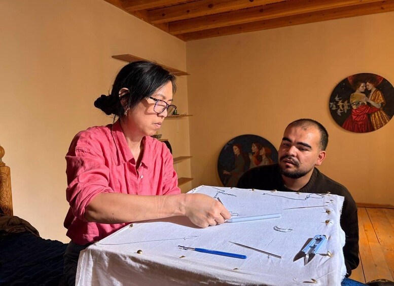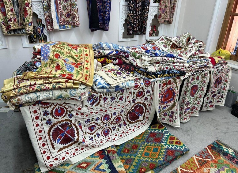 The experience continues with a Suzani embroidery masterclass, one of Uzbekistan’s most beloved textile traditions. Suzani pieces were historically created for weddings and believed to protect homes from evil spirits. Guided by skilled local artisans, you’ll learn the basic stitches and patterns before creating your own embroidered design. As you work, you’ll gain insight into the symbolism behind Suzani motifs and the patience and artistry that go into every piece. Your finished embroidery becomes a meaningful handmade keepsake to take home.