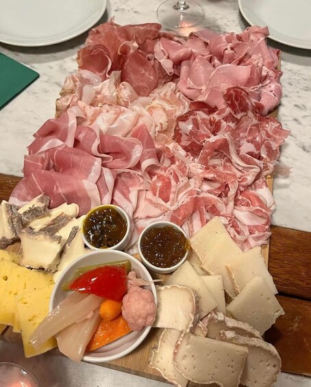 To make everything even tastier, a rich platter with salami, ham, IGP finocchiona, and fresh cheeses chosen on the farm, accompanied by selected starters that enhance every sip.
