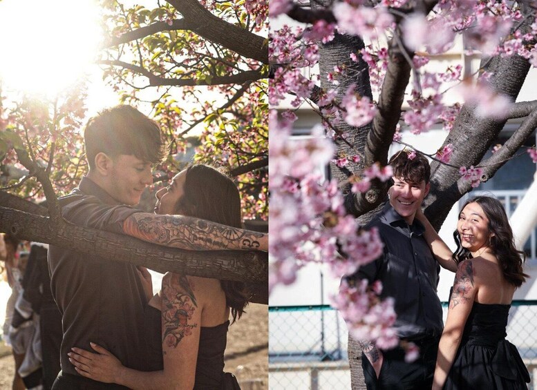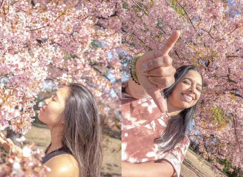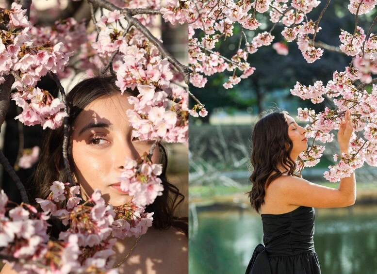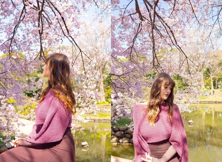 Experience a stunning cherry blossom photo session in Tokyo with a professional photographer during two distinct seasonal periods.