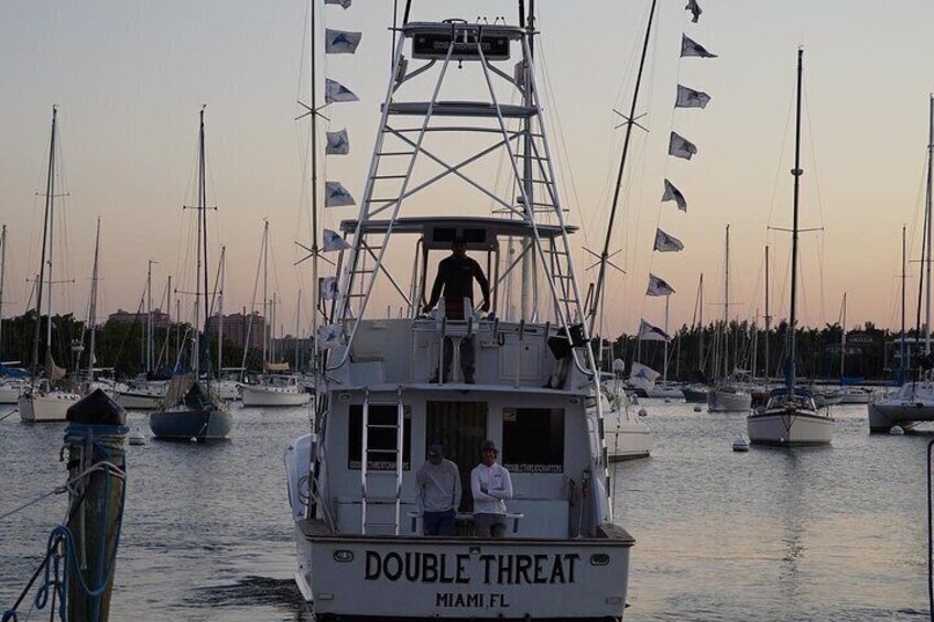 With the vibrant Gulf Stream just a few miles off Miami’s coast, anglers can expect an unforgettable day of deep sea fishing. The Double Threat, a fully equipped 43-foot Hatteras, caters to up to six guests, ensuring comfort and excitement. Whether you're kite fishing for sailfish or bottom fishing for snapper, our experienced crew is dedicated to providing a productive fishing experience. Enjoy the thrill of the catch while relaxing in an air-conditioned cabin complete with all the amenities. No matter the season, there's a bounty waiting beneath the waves.