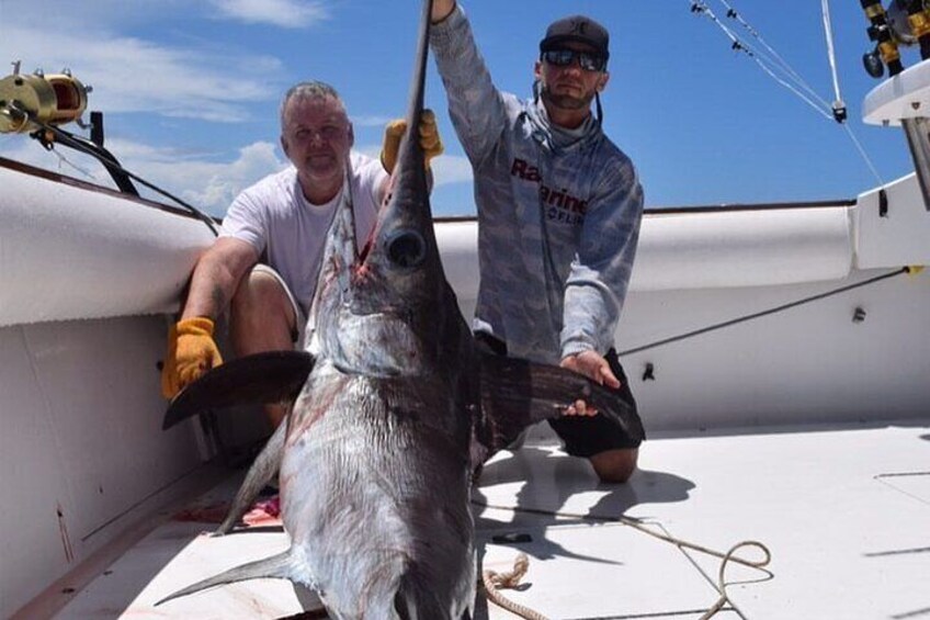 The Double Threat is a 43-foot Hatteras that was fully renovated during 2021. They have a passionate crew and fish at a tournament style pace during every single trip. They run the boat hard, fish hard, and work hard. Their reputation is a top priority, and they are dedicated to showing every group how exciting sport fishing can really be. There are less expensive charters out there, but these business models often place an emphasis on saving fuel, bait, and getting back to the dock. The approach with Double Threat Charters is just the opposite. They punch it to where we need to go and use whatever techniques necessary to put you on the fish. Usually beginning around 7 am or 1 pm, ¾ day trips aboard the Double Threat are a great option if you want to maximise your chances at getting the rods bent. These 6-hour trips provide ample time for kite fishing, trolling, wreck fishing, sight fishing, and more. The Double Threat specialises in kite fishing for sailfish and sight fishing for dolphin (mahi mahi) in addition to trolling and wreck fishing. These trips are all-inclusive with crew, bait, licences, tackle and more provided. All you need to bring is food and preferred drinks.