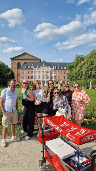 Enjoy 5 different wines with historic connections to buildings or places in the city centre of Trier on this guided walking tour. Uncover the city's facinating history on your way from the Porta Nigra gate to the Viehmarkt Square.