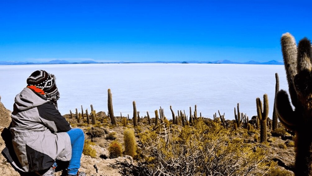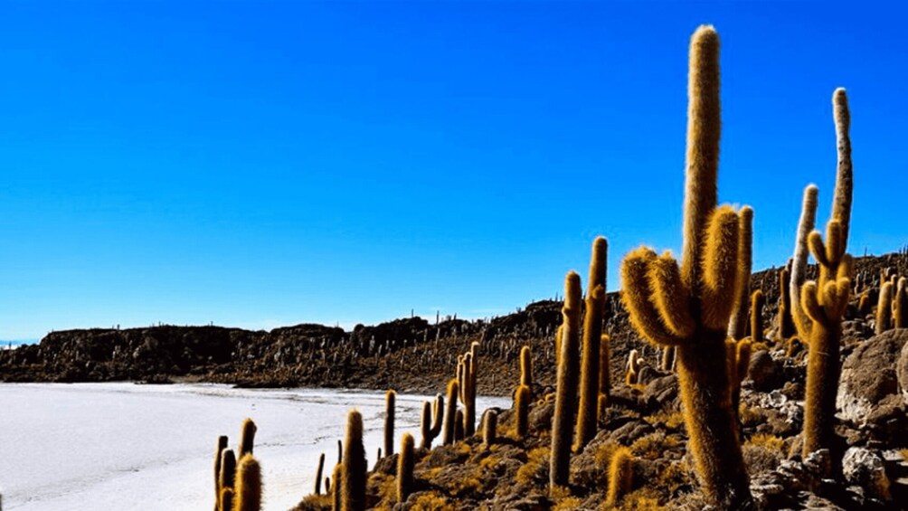 Following this jam-packed morning, after lunch you’ll carry on to “Isla Incahuasi” (Fish Island), where you will have time to take a hike to the top of the island to see giant cacti, and rock formations made of petrified coral. Make sure you and your group pose for some fun perspective- and proportion-distorted photos, taken against the backdrop of the striking white surface of the salt flats.