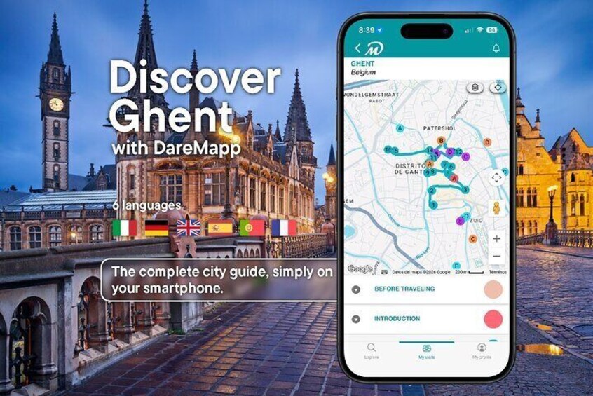 Visit Ghent at your own pace without groups or schedule with your mobile in Multilingual