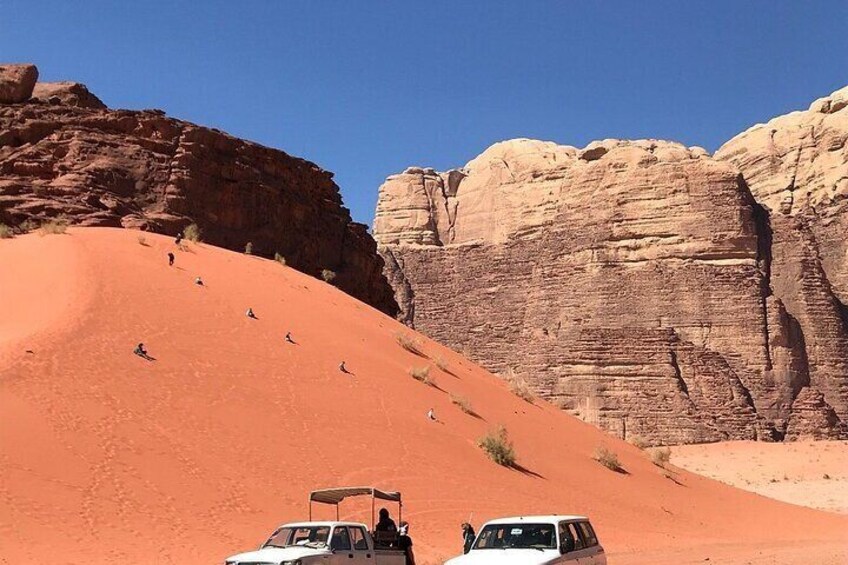 All short tours include stops at Lawrence's house, the big red sand dune, Khazali Canyon and Little Rock Arch. Depending on the option you choose, further activities like sandboarding, hikes, or camel rides might be included.