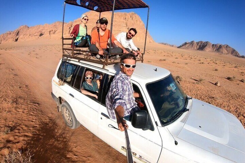 Our jeep tours allow you to visit the most sites in the least amount of time as well as reach some of the far-away attractions inside Wadi Rum Protected Area. Even on our short tours, you get a good taste of our magnificent desert with its rocks, dunes, canyons, and big mountains. If you want to see the sunset, we can start the tour in the afternoon.