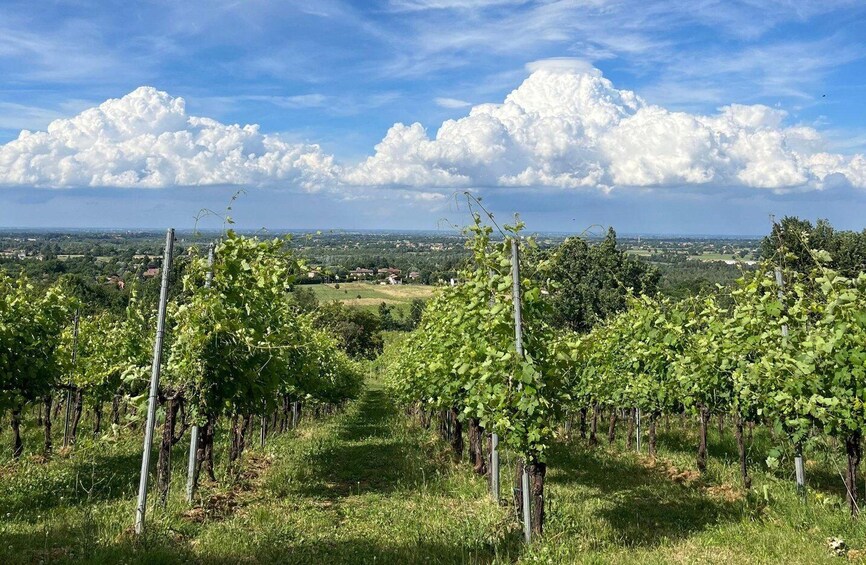 Meet winemakers on Parma’s hills, step into cellars of sustainable viticulture, taste Colli di Parma DOC wines with DOP cold cuts and Parmigiano Reggiano delights.