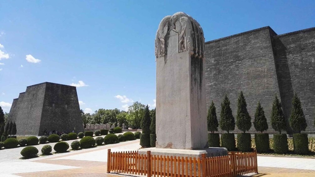 Qianling Tomb is the joint burial place of Emperor Tang Gaozong and Empress Wu Zetian, and includes the remains of other members of the royal family. Its highlights include its many stone statues from the Tang Dynasty (618–907) and mural paintings that decorate the walls of the tomb.