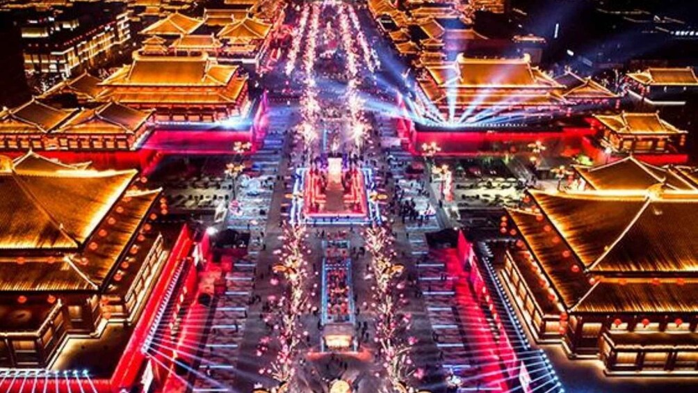 As dusk falls, immerse yourself in the vibrant energy of the Tang Dynasty Ever-Bright City, a sprawling cultural and entertainment district. Modelled on the Tang Dynasty’s golden age, the area boasts grand Tang-style architecture, glowing lanterns, and lively street performances. Savour local snacks, shop for handicrafts, and witness the breathtaking night view of the Giant Wild Goose Pagoda illuminated against the sky.