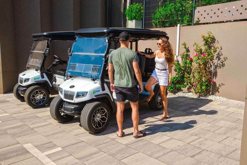- Enjoy a open-air ride in a modern, electric golf cart
